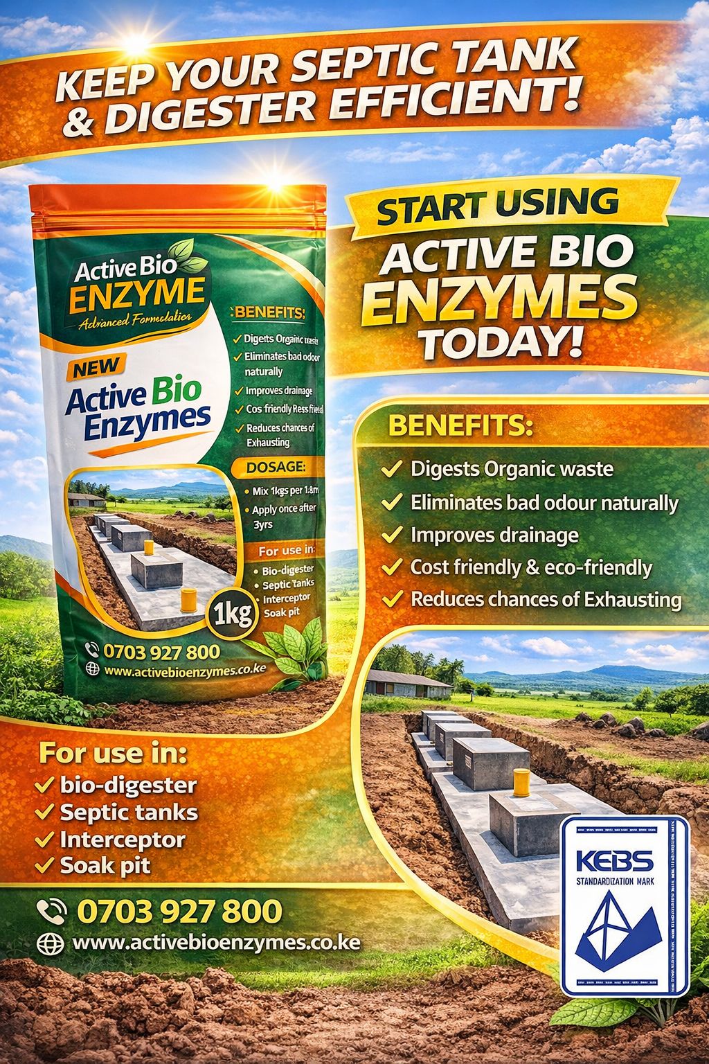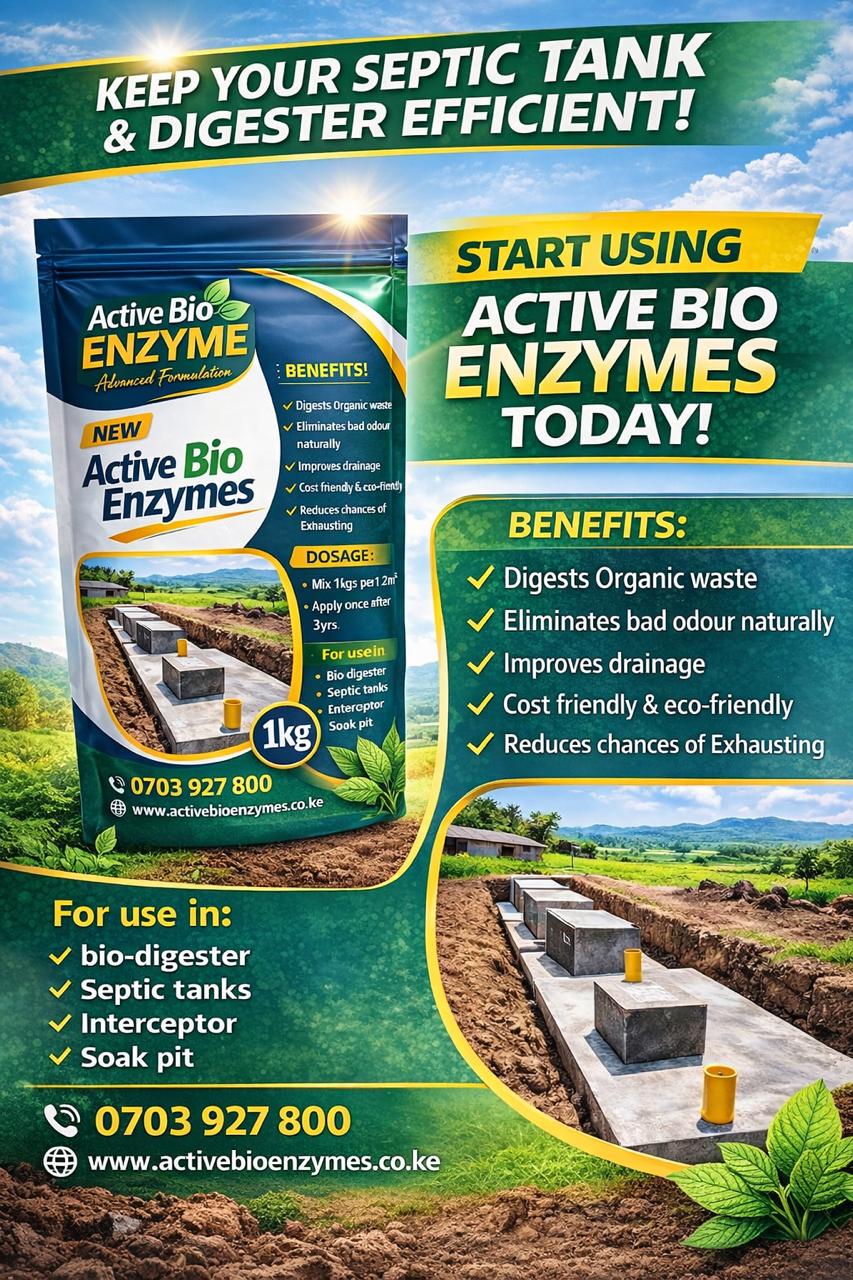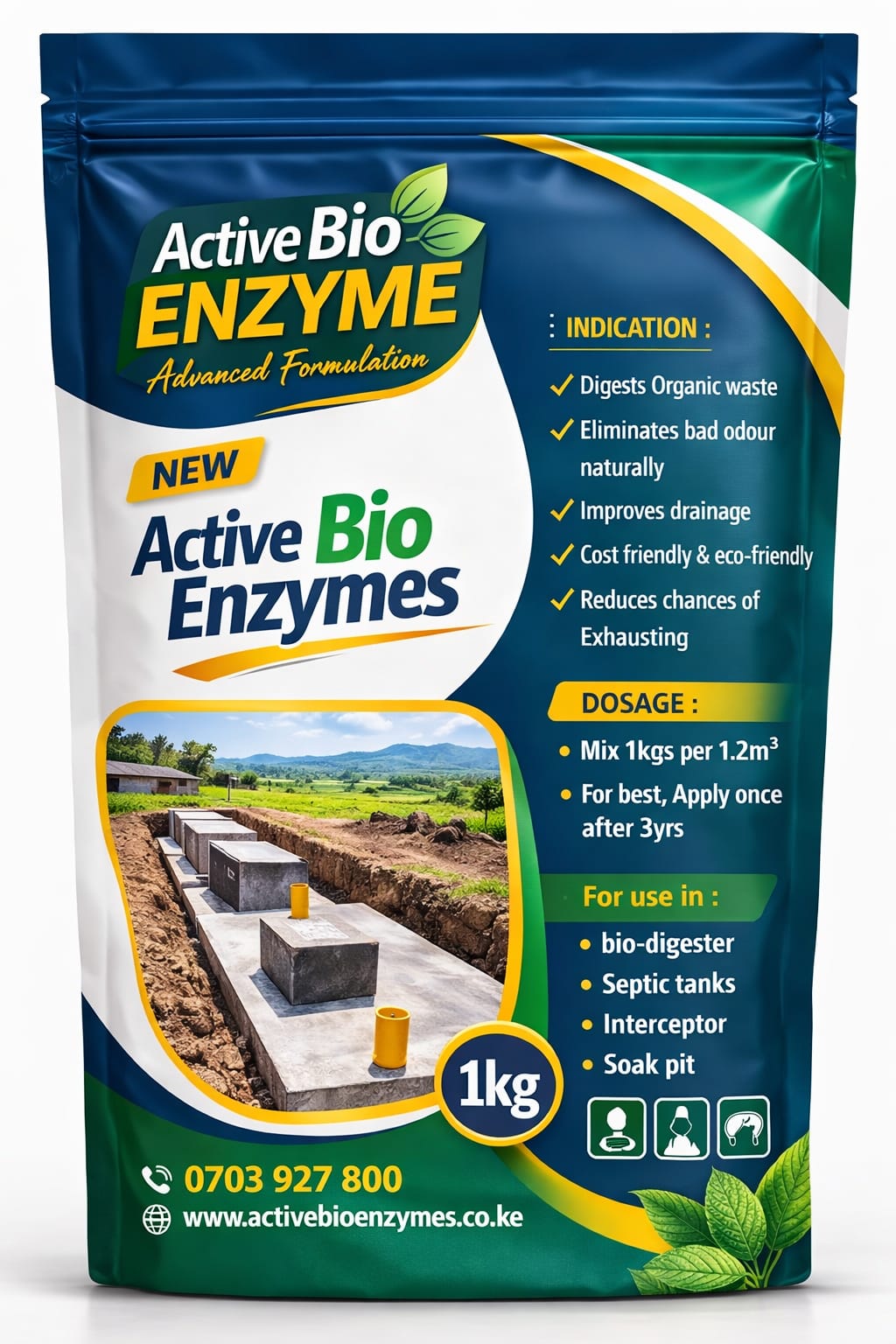 Keep your septic tank or bio digester running smoothly and odor-free with our Bio Enzymes – 1Kg Pack, a powerful organic solution specially formulated to break down waste, reduce sludge, and eliminate foul smells. These 100% natural enzymes and beneficial bacteria accelerate the decomposition of organic material in septic and biodigester systems, improving flow, preventing blockages, and extending the system's lifespan. Ideal for homes, institutions, and small commercial setups, this product is safe, eco-friendly, and easy to use—perfect for maintaining hygiene and efficiency in waste management.